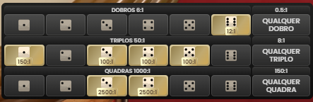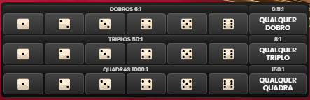 Também há apostas específicas como Dupla, Triplo e Quadra, que focam nos dados do Jogador ou da Banca. Essas apostas têm pagamentos variados e podem ser multiplicadas aleatoriamente.